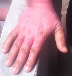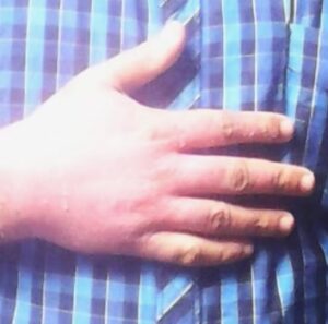 Final Image of Hand. After this stage, his hand recovered slowly with its original skin.